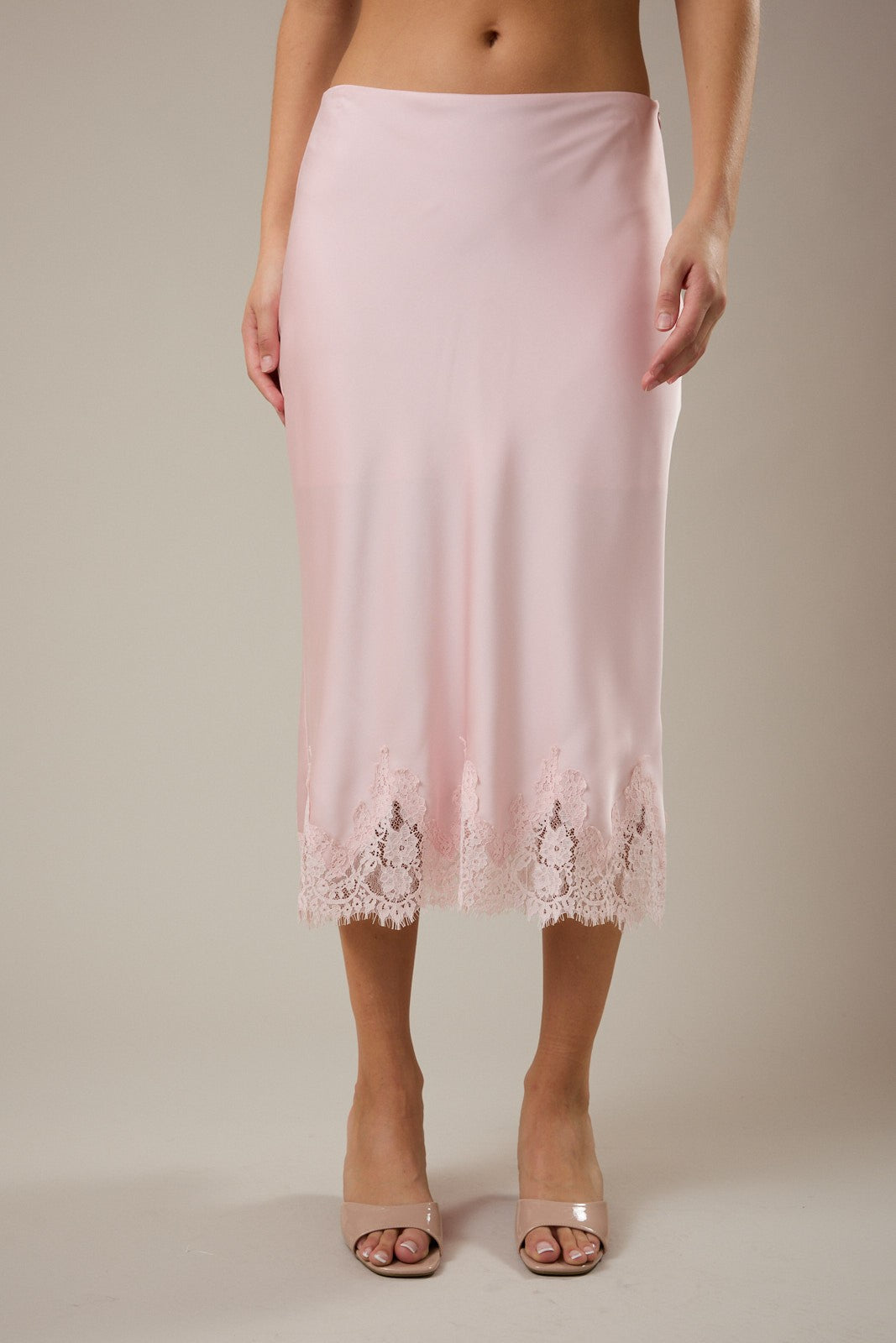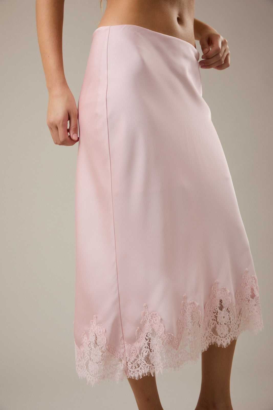 STASSI LACE HEM MIDI SKIRT - PINK