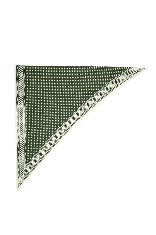 Your new accessory staple is here with this olive and cream polka dot silk scarf. Can be worn in a multitude of ways.